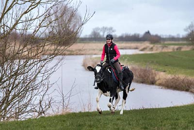 3月18日,在德国埃伦塞尔达默锡尔,13岁的姑娘施泰因克尔骑牛在湖边行走。这头名为“卢纳”的奶牛承受施泰因克尔的练习后可以敏捷奔驰并越过小型障碍物。